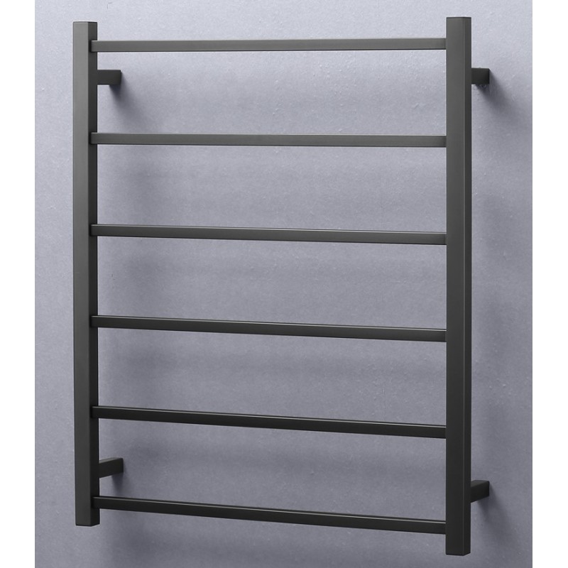 Matte Black Heated Towel Rail Square Bars - 680x520mm